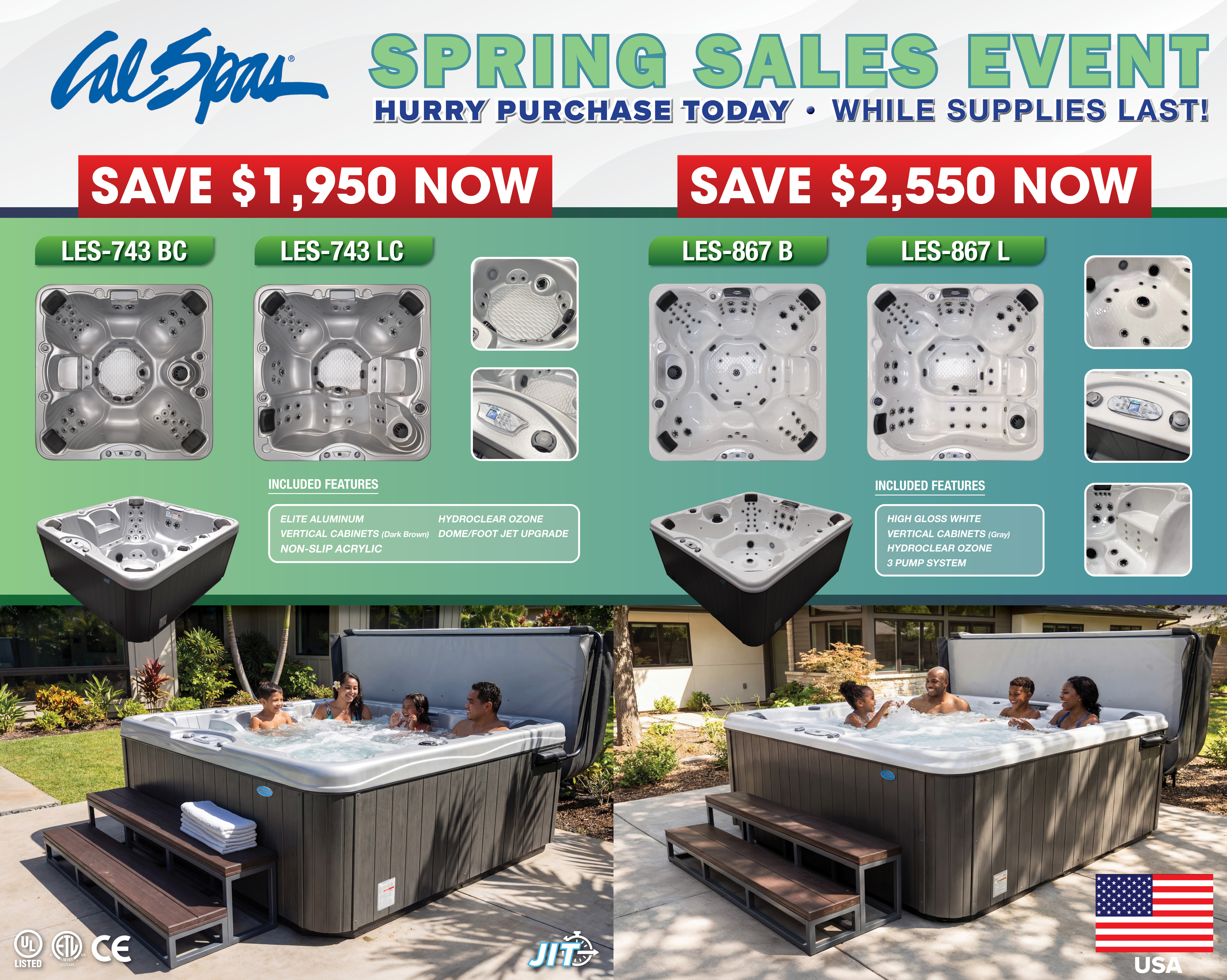 100 hot tubs in beautiful retail showroom. We have new stock wrapped up in the warehouse for immediate delivery as well as floor models for sale, or you can custom order your Cal Spa and we'll get it to you an average in just one week.
